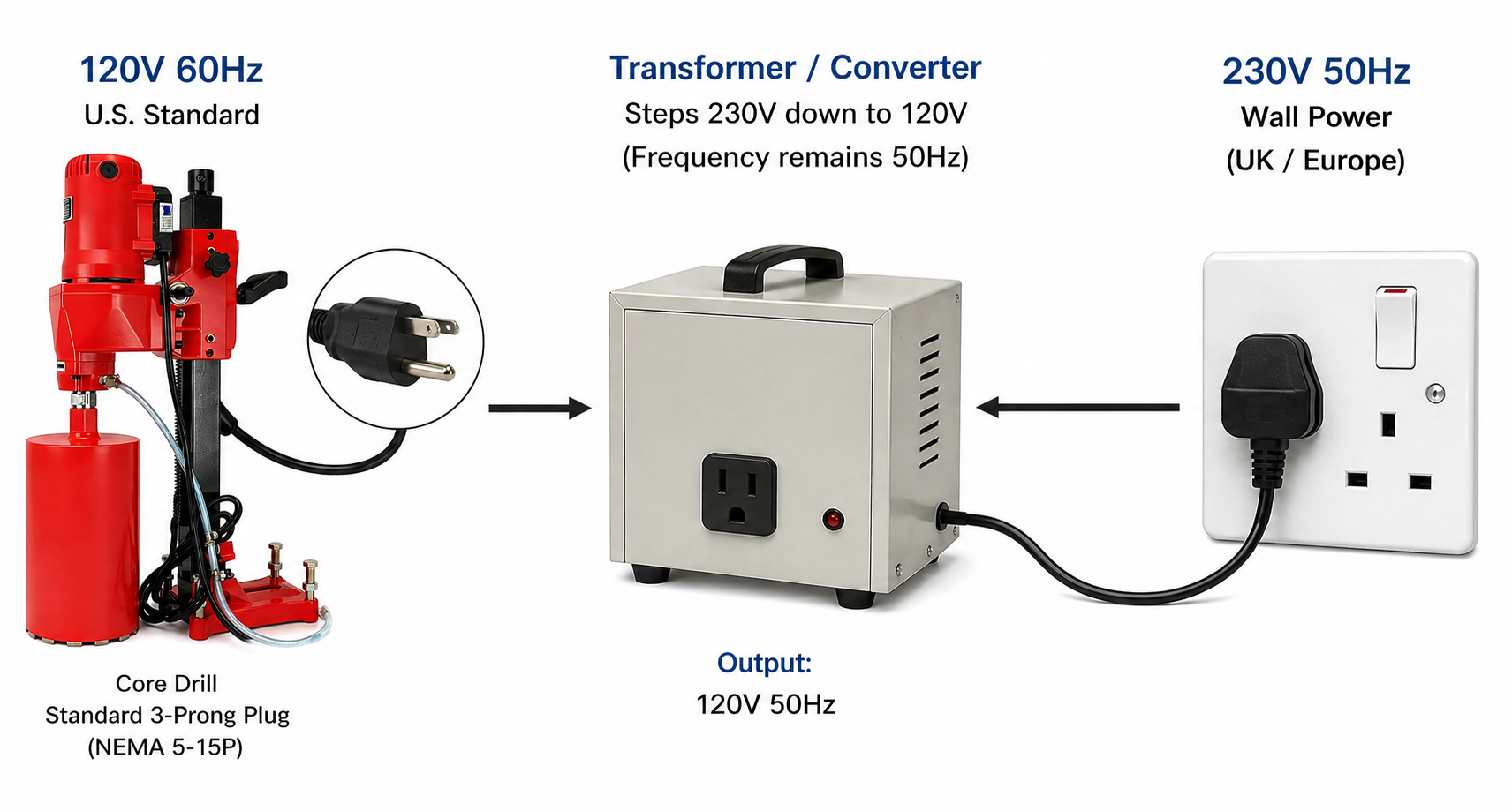 This means a 120V / 60Hz tool may still operate on 50Hz power after conversion. Depending on the tool and motor design, this can sometimes affect performance, including motor speed, power output, and heat.
